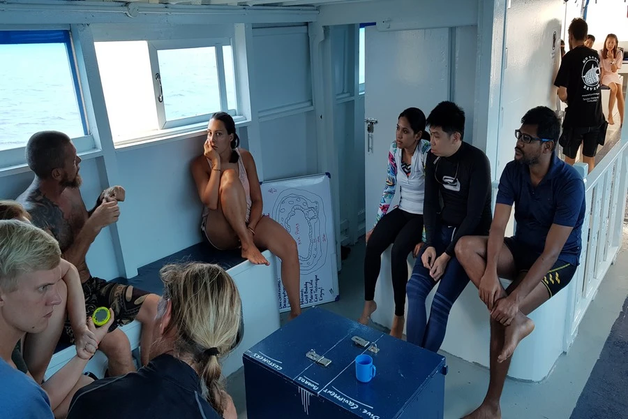 and comfortable relaxation area where divers can unwind and socialize between dives. Whether you want to soak up the sun or just relax in the shade,